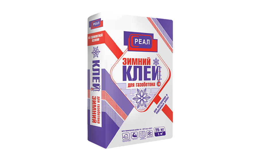 Клей для газобетона зимний РЕАЛ, 25 кг